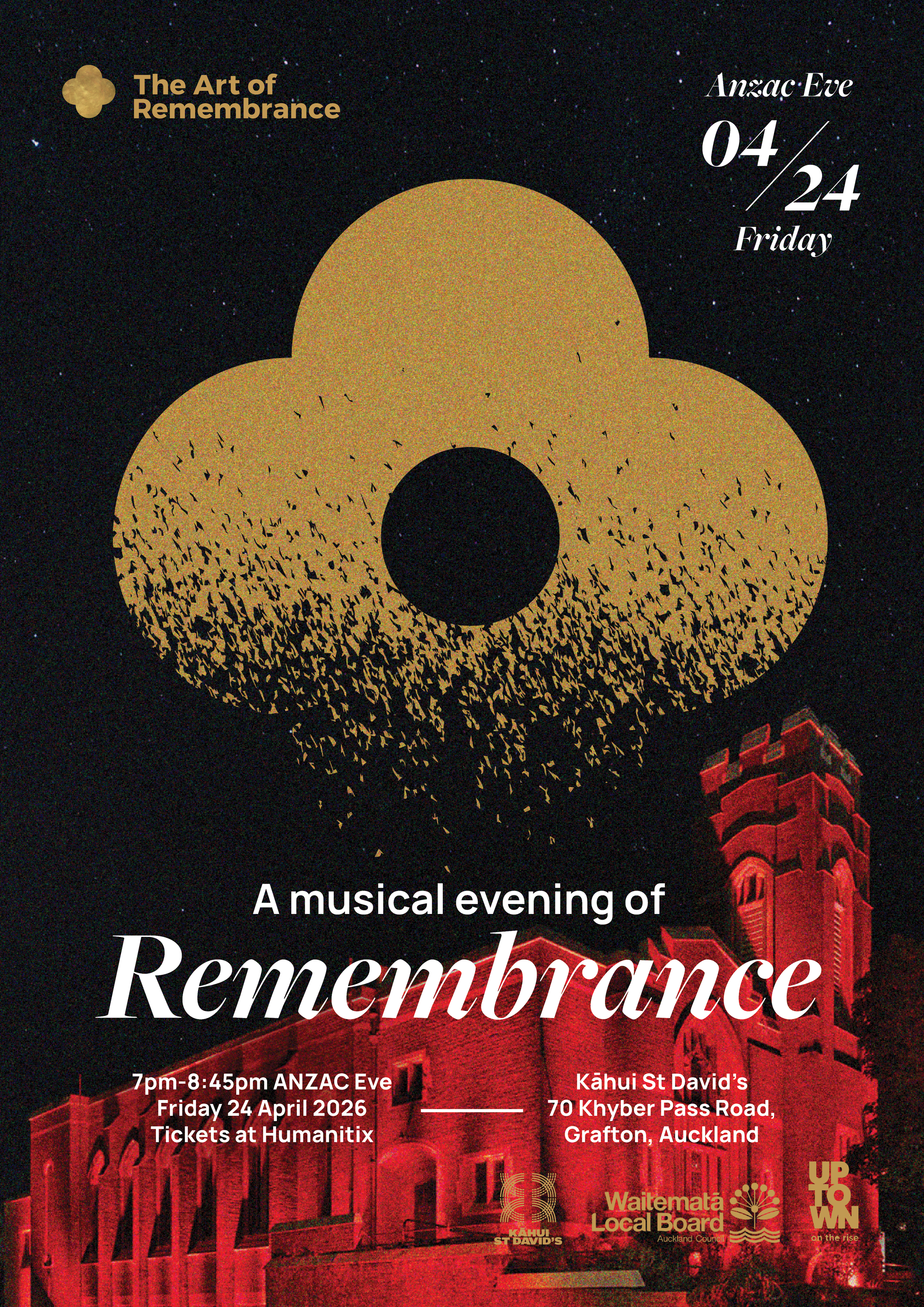 We will remember them at the Art of Remembrance 2026, the annual musical night of remembrance in the Great Hall of Kāhui St David’s, Auckland’s living memorial. On Friday 24 April, join veterans, whānau, and the wider community for an unforgettable evening honouring all members and veterans of the New Zealand Defence Force.