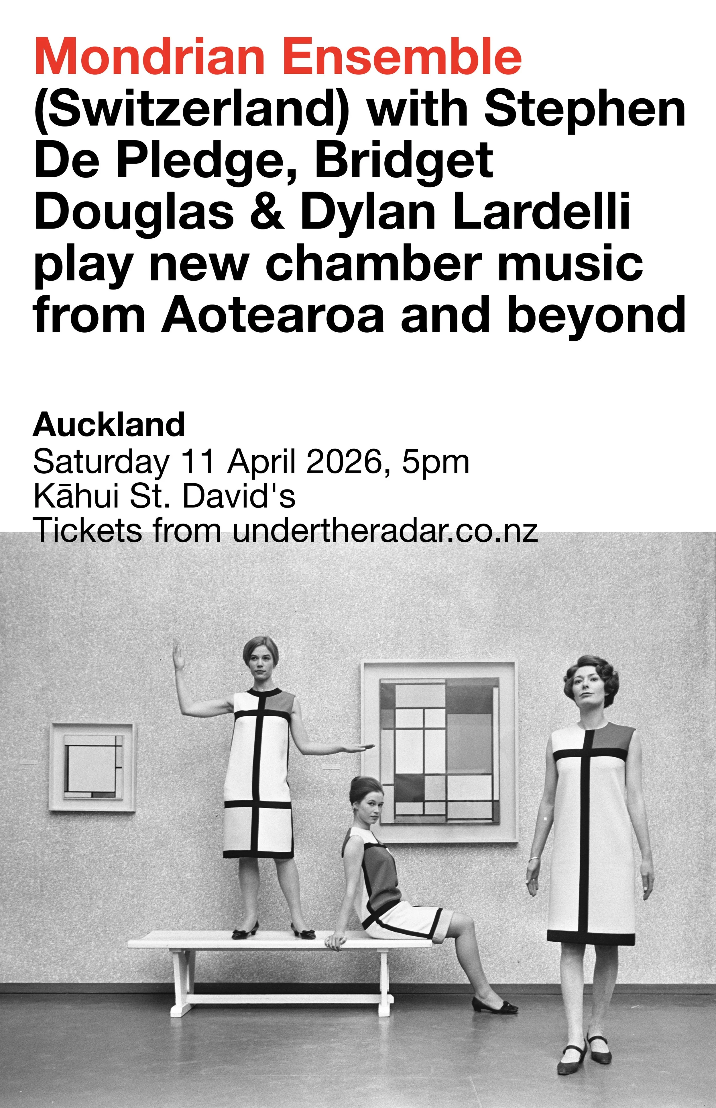 Mondrian Ensemble (Switzerland) with Stephen de Pledge, Bridget Douglas & Dylan Lardelli play new chamber music from Aotearoa and beyond.